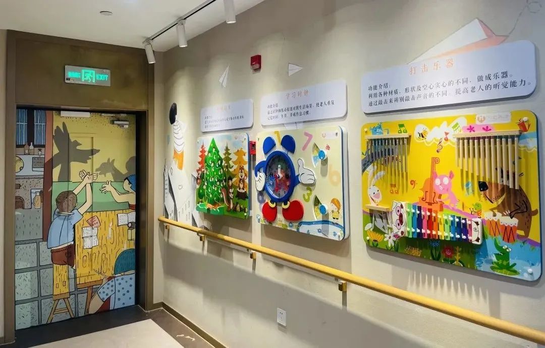 萬宏悅馨養老院的認知癥照護專區結合了非藥物干預的康復理念,在長者居住的樓層打造了游戲康復類、感統干預康復類、機能康復類等不同主題的活動空間,還在功能區設置了綜合評估室、五感體驗室以及親情接待室,通過融合式單元管理模式,模擬家庭環境、綠植療法、音樂療法、藝術療法、懷舊療法等與藥物相結合,針對認知癥長者身心特點和照護需求,延緩認知癥發展進程,改善長者抑郁、焦慮等情緒,讓患有認知癥長者享受有意義的生活和有溫度的養老。