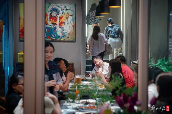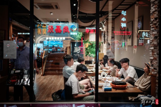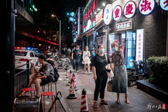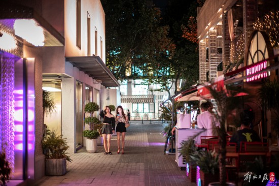 最近,上?!耙豢嚏姳忝裆钊Α笔痉渡鐓^建設試點單位名單公布,長寧的江蘇路街道和華陽路街道上榜,也再一次印證了不少市民心中“宜居長寧”的印象。8月17日晚,記者來到長寧區的武夷路,定西路餐飲街,上生 新所走訪,親身感受到這幾個互相之間步行15分鐘內可達的夜經濟勝地中,夜食,夜讀,夜游的熱鬧景象。