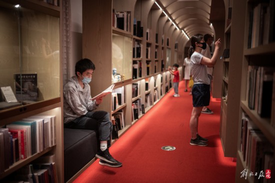 從一樓的綜合圖書區到二樓的藝術圖書區,書店為讀者準備了大量的閱讀座位,每個人都能在這里找到心儀的書,和舒服的姿勢,享受夜間的閱讀時光。