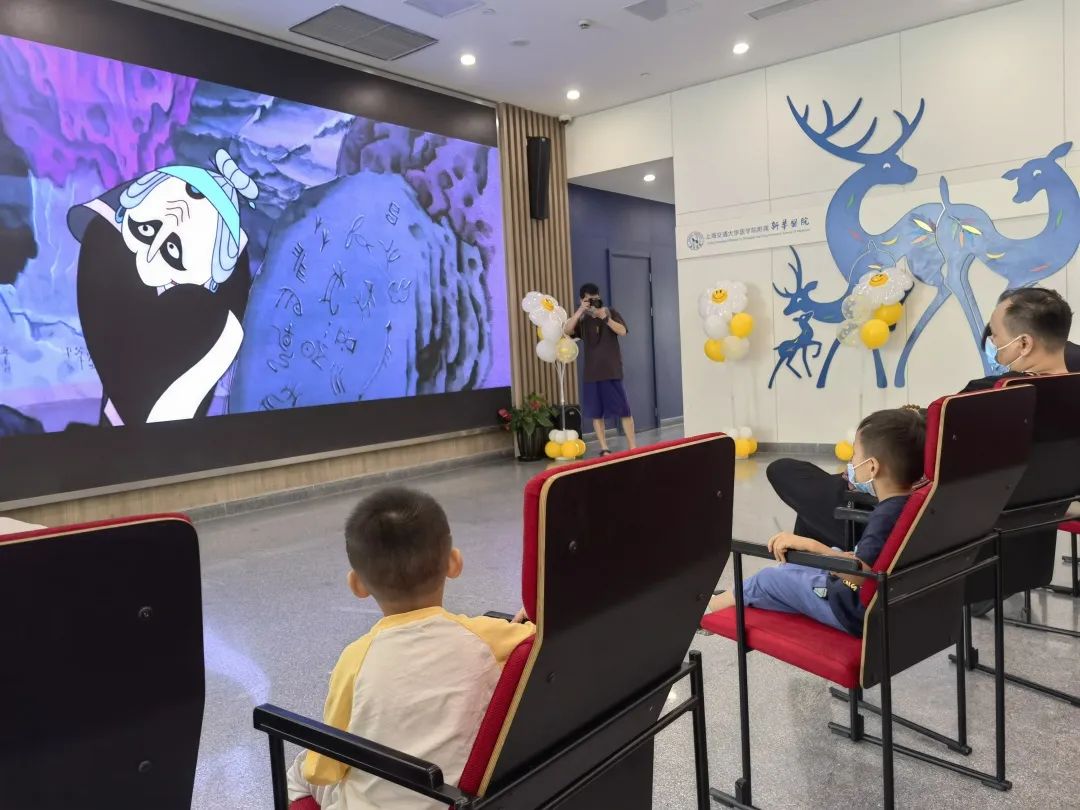 每天中午,在兒科綜合樓里,都會有神秘的國漫英雄出現。五花八門的電影周邊、經典動漫電影放映,吸引了不少小患者和醫護人員前來獻愛心。