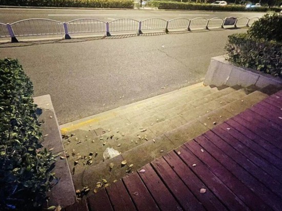 “有的步道坡很緩,比較適合輪椅出行,但也有些路段感覺不方便。有時走著走著,突然來了個臺階,那條路就斷了,這時候推輪椅就很麻煩?!贝蟪套诱f,這種情況在兩區交界的地方尤其明顯,比如長寧靠近普陀段就碰到這樣的情況。