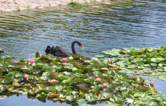 在園區1號門入口處林蔭廣場的花影魚躍區,園方在繽紛的睡蓮之間嵌入了玻璃魚缸。記者看到,一只蜻蜓停在睡蓮上,慵懶十足,還有上百尾草種、文種、龍種類觀賞金魚,擺著魚尾悠閑地嬉戲在蓮葉間,與各色睡蓮相映成趣。據介紹,這里主要展示變色睡蓮、永恒睡蓮等澳洲睡蓮?!皠傔M門的第一眼就很驚艷,這里展出的都是睡蓮精品。除了能夠欣賞它們的美,還可以了解不少關于睡蓮品種的知識?!庇慰蛣⑴啃老驳卣f。