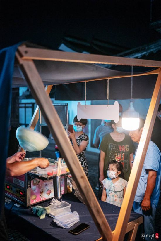 棉花糖,綠豆湯,馬陸葡萄,自釀老白干……市集里的美食很有嘉定在地的特色,無論大人還是孩子的口味都能被照顧到。