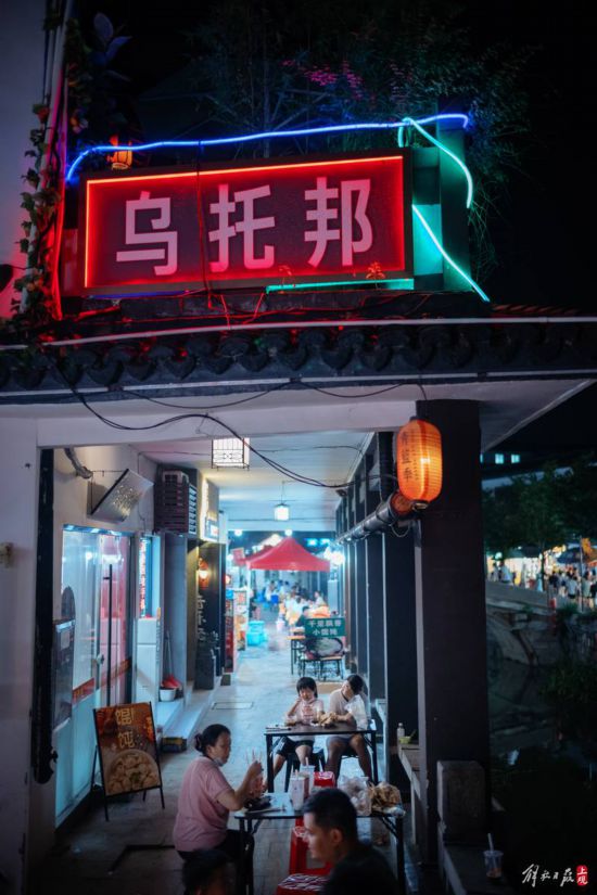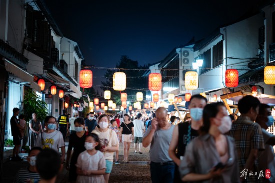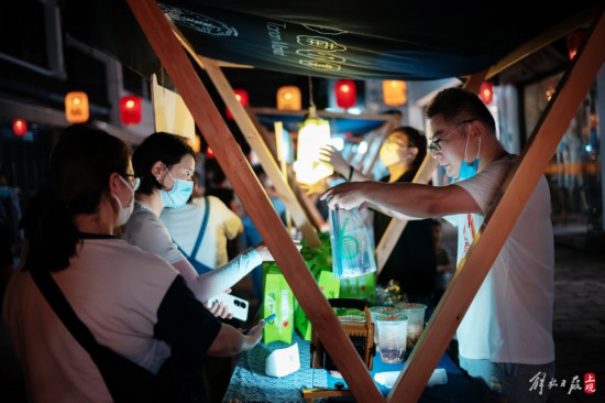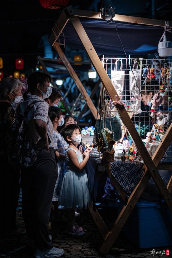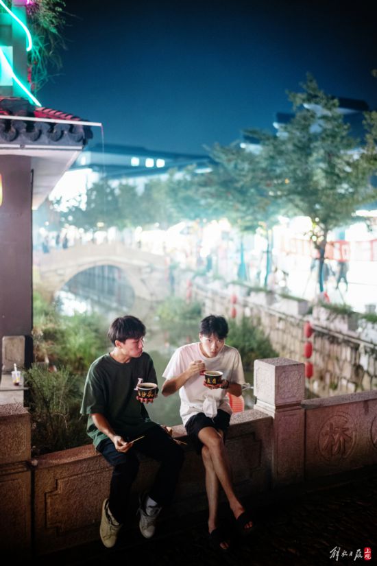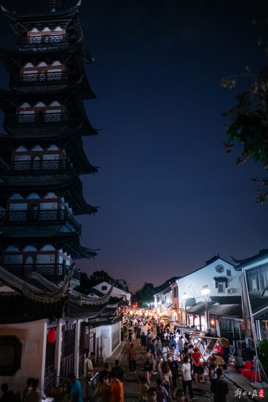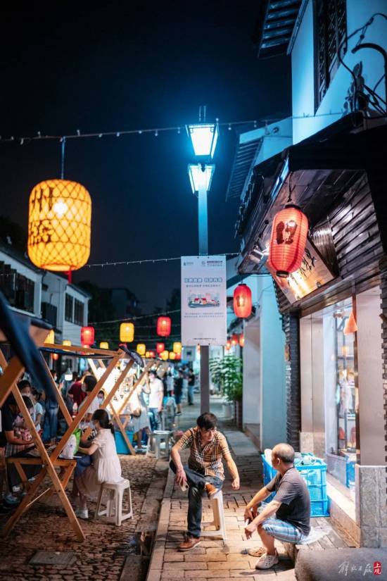 作為嘉定數百年來的商貿中心,州橋景區兼具有江南水鄉繁華與閑適的氣氛。與其說來塔南市集游玩,不如說塔南市集是夏夜的州橋景區中,很有亮點的一個打卡地。在州橋老街,能看到老居民和游客們雜處一地,或大聲交談,或吃吃喝喝,每個人都能在這里找到讓自己充分放松的感覺。
