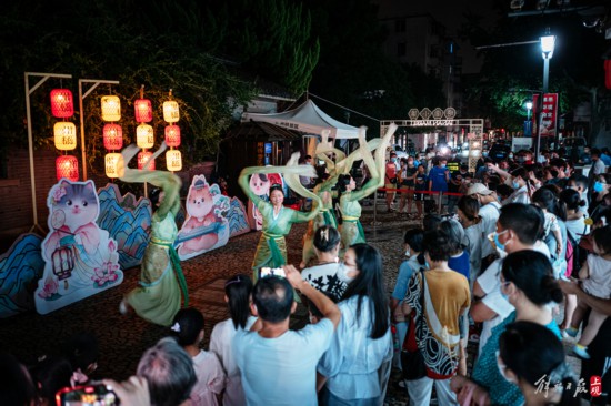 市集里的漢舞、古箏表演充滿了濃濃國風,贏得了圍觀游客的陣陣喝彩。