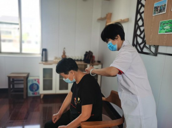 “最近睡眠有沒有好一點?”“您空調吹多了,著涼了,可以泡點紫蘇姜茶來喝……”日前,在金山區漕涇中草藥科普館,村民們一大早就陸陸續續前來貼“三伏貼”,漕涇鎮特聘中草藥科普指導老師董曉梅給每位村民一一把脈,詢問近期身體狀況。在做好配穴后,她又帶著團隊給村民們進行穴位敷貼。