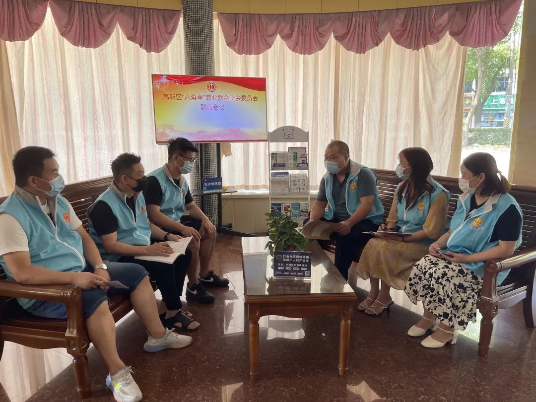 原來,這幾位店主正在商量著動員門店員工掃碼加入金山區高新區首個商鋪聯合工會——上海灣區高新技術產業開發區六角亭商業聯合工會的事。