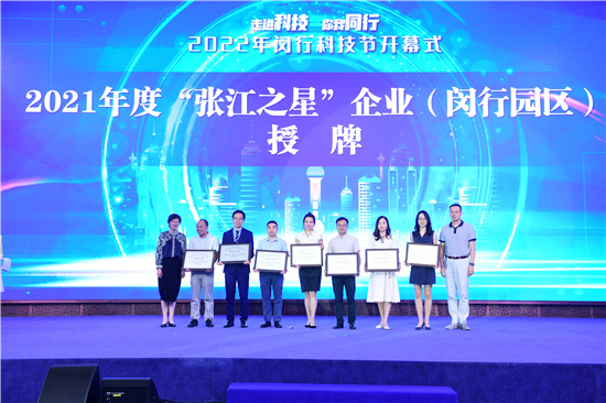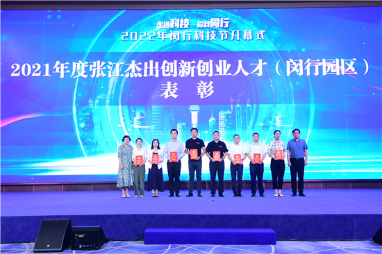 開幕式上重點表彰了上海市科學技術獎閔行區獲獎代表。2020年度上海市科學技術獎281項(人)授獎名單中,閔行共有73項(人)獲獎,占比26%,全市占比歷年來首次超四分之一。同時,張江閔行園區7家榮獲“張江之星”的企業被授牌。2021年度張江杰出創新創業人才表彰評選出了100名杰出人才,閔行共有8人獲得了“2021年度張江杰出創新創業人才”表彰,受表彰人數在全市排名第二,充分展現了閔行區科技企業的自主創新活力。