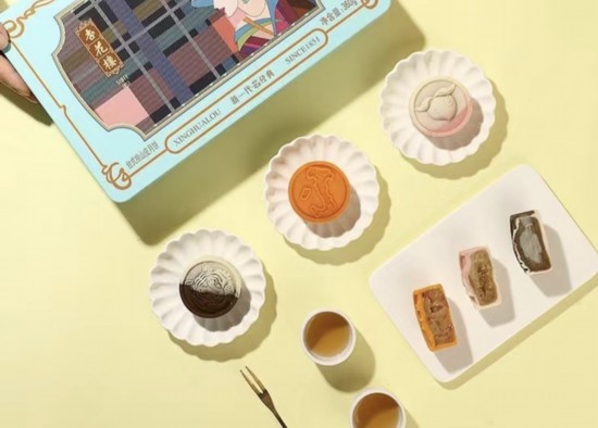 杏花樓副總經理智靜告訴記者,杏花樓今年推出月餅禮盒32款、散裝月餅7款。今年的盒裝月餅分為——嫦娥、金迷、時尚三大系列。杏花樓今年最具代表性的嫦娥珍月款,沿用了傳統的鐵盒包裝以及彩邊元素,主圖上的嫦娥不見了,取而代之的是,掩映在山水和繁花里的杏花樓古典建筑,以及遠處嬉鬧的孩童、身著民國服裝的男女。品月、俏月、覓月禮盒則實現了完全的“變身”,主圖是摩登女郎形象,干凈流暢的線條,舒適大氣的配色,充滿海派與時尚感。