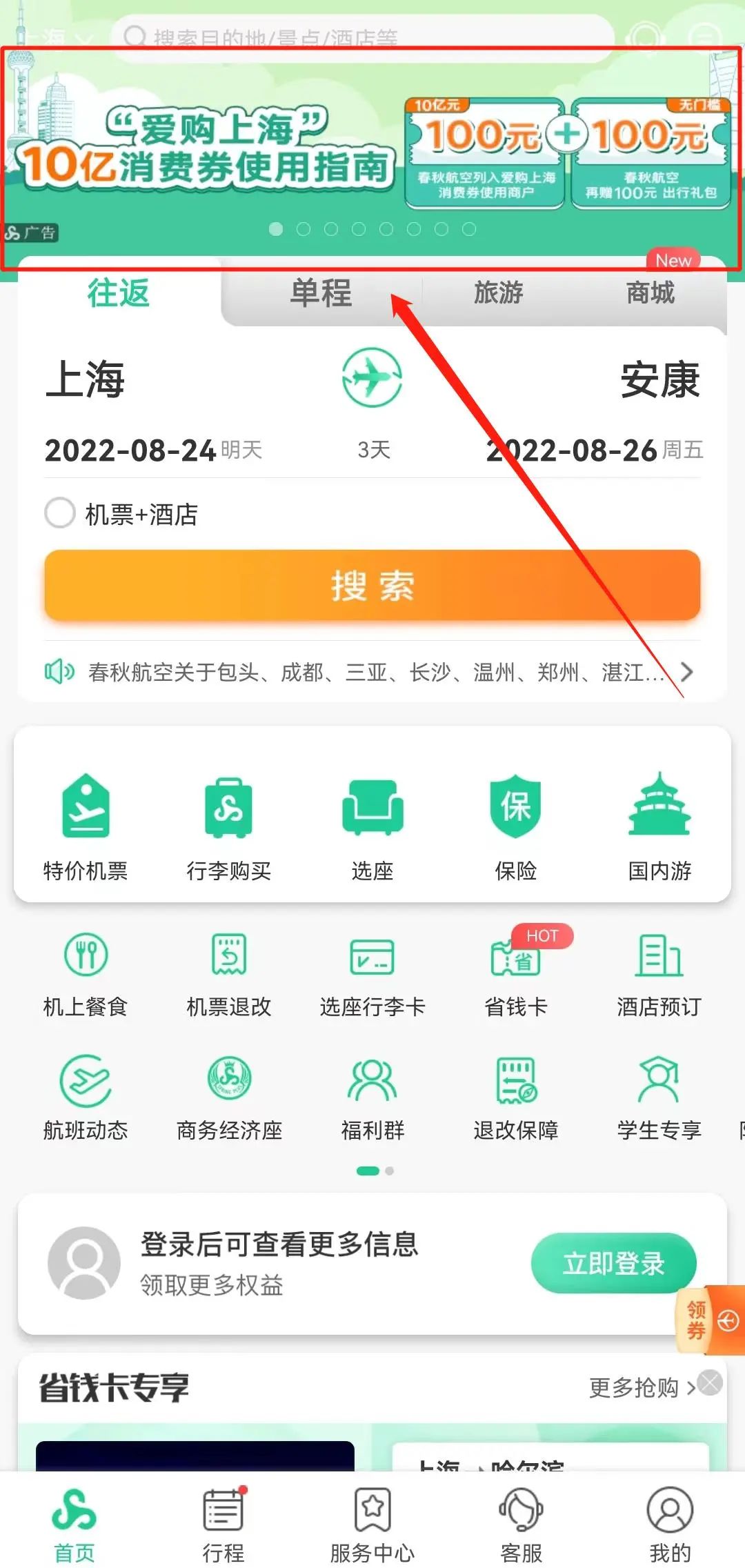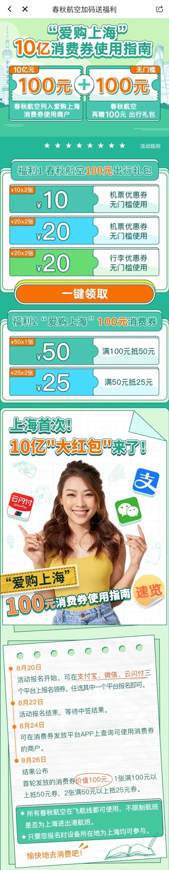 雙重優惠!春秋航空推出的“百萬旅行補貼”,可疊加使用“愛購上?!彪娮酉M券