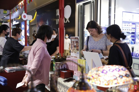 2022年8月23日,由進博會“6天+365天”常年交易服務平臺綠地全球商品貿易港集團主辦的“進博嗨購·繽紛生活節”在綠地繽紛城拉開帷幕,精選歷屆進博會熱銷商品展銷,促銷優惠最低五折,助力上?!拔逦遒徫锕潯?。