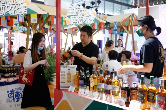 作為本次繽紛生活節的主打活動之一,進博啤酒文化季吸引了不少消費者駐足體驗。綠地全球商品貿易港入駐的海外客商帶來近20個國家和地區的50余款進口啤酒,其中不乏口味濃郁清爽的德國kaiserwin凱撒啤酒、熱帶水果風味的$UMO美國淡啤酒、小麥與燕麥完美融合的馬路殺手新英格蘭IPA、青草香氣的日本生啤酒等往屆進博會人氣爆款。