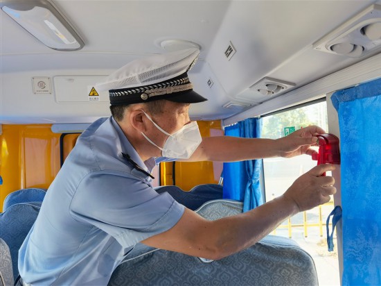 東方網通訊員張嘉煜8月24日報道:“這個逃生錘取下后警報聲較低,可能是電池電量不足,需要立即維護?!薄皽缁鹌骷磳⑦^期要盡早更換?!遍_學在即,連日來,松江公安分局交警支隊車宣大隊校車專管民警張衛元和同事們對全區49所開通校車接送服務的民辦學校共計160輛校車開展了一次全面安全“體檢”。