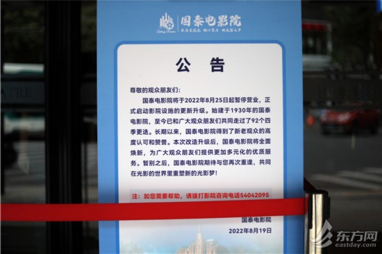為了更好地為廣大觀眾提供更多元化的優質服務,國泰電影院8月19日宣布,于8月25日起暫停營業,改造升級后,國泰電影院將全面煥新。讓上海的影迷朋友們共同期待,暫別之后的再次重逢,在光影世界里重塑新夢。