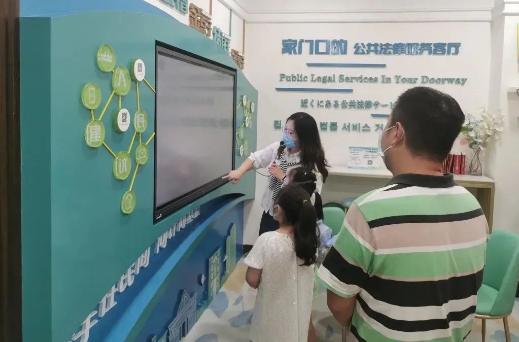 “這臺機器有什么作用?”“這里是‘一站式’便捷法律服務點,點擊標識可以遠程約見公證員哦?!痹诠卜煞拯c,司法所工作人員為孩子們演示了創新設置的遠程視頻公證、國際社區法律事務指引等特色法律服務,讓孩子們大開眼界。