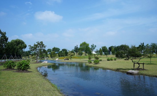 豐富的水源與營造的自然環境吸引了不少鳥類攝水、捕食。牡荊等自然開展的灌木,枝條斜伸至水面,與水中置石互動,供翠鳥等停留;牛背鷺、小白鷺等鷺鳥體型較大,易于觀察,常踱步于溪邊爭搶地盤;白頭鵯在40度的高溫天也不忘來訪偷食翠蘆莉嬌嫩的花朵。此外,低飛的各色蜻蜓,透明的膜質翅膀在陽光的照耀下尤其迷人,是體驗野趣的好去處。