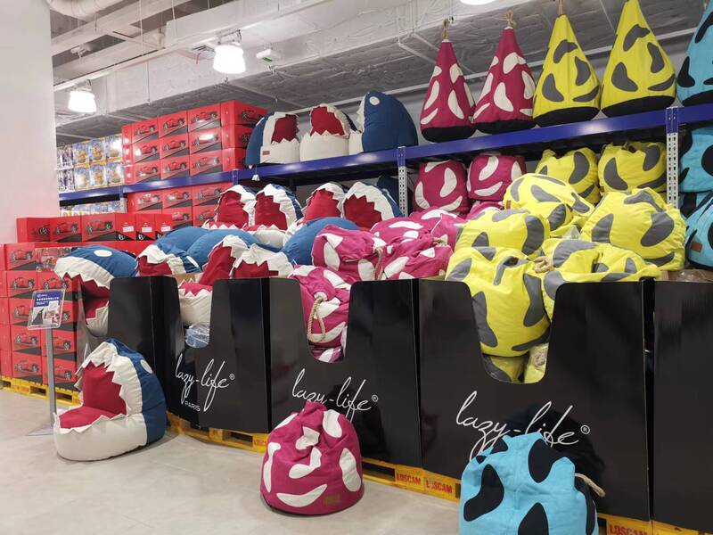 山姆寶山店為開業酬賓推出的特惠懶人坐墊和鯊魚座椅。