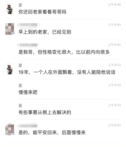 小鄭妹妹表示,哥哥回來以后還在適應親人在身邊的生活,但人變得開朗了許多,在家里還經常幫助母親做家務,并打算過段時間要出去找個工作。對于民警的認真負責,家屬再次向民警表示了感謝。