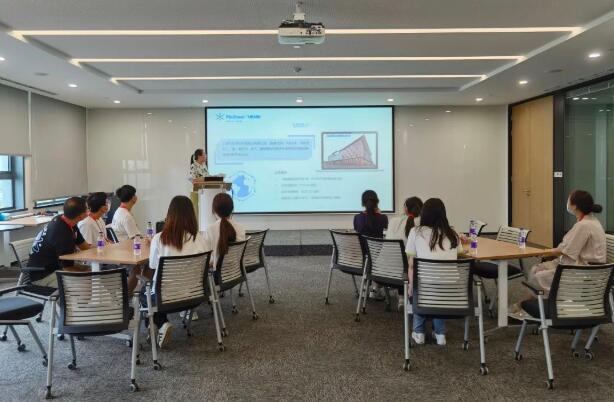 該企業是一家研究、生產、銷售高科技制造中使用的材料和特種化學品的公司。招聘經理介紹了公司概況、企業文化、營業情況等相關內容后,公司團支部書記、研發資深工程師又針對半導體材料、紫外固化材料、屏幕顯示材料、有機合成材料等作了詳細講解?!靶【G洲”們對顯示光刻膠、錫球等這些陌生的“新事物”都充滿了好奇,聽得聚精會神,并一致表示收獲滿滿。