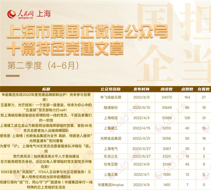 “上海市屬國企微信公眾號十篇特色黨建文章”