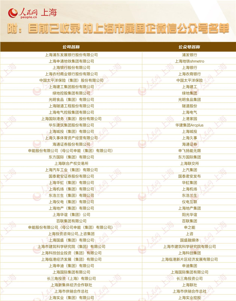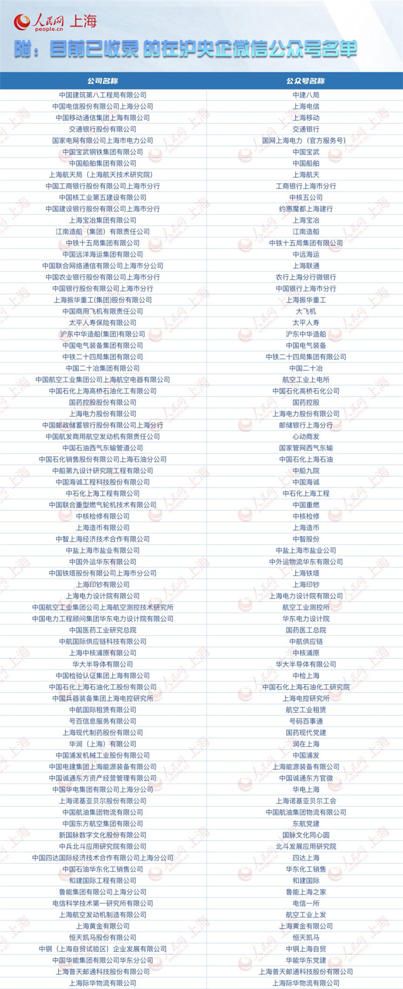 附:目前已收錄的上海市屬國企、在滬央企微信公眾號名單