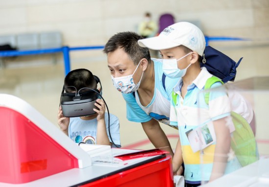 在科技館一樓大廳,孩子們開啟“科技奇妙闖關之旅”,深度體驗“遇見科技”“感受科技”“了解科技”“共筑未來”四大版塊的最新AI應用。