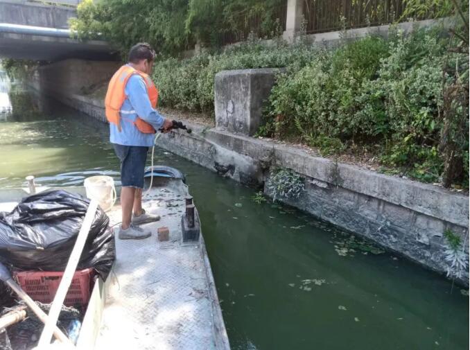 各養護單位迅速對河道范圍內“一枝黃花”、福壽螺的分布和生長情況進行地毯式排摸。工人們頭頂烈日、不畏辛苦地將“一枝黃花”植株集中銷毀,做到不給“一枝黃花”留一處生存之地。對于清理福壽螺,河道一線養護人員和福壽螺打起了“追繳戰”,清理工作雙管齊下,螺、卵塊“兩手抓”。通過水槍沖刷、鏟除螺卵、集中搗毀、深埋處理等方式,進行集中清理,盡可能減少成螺數和再次傳播繁殖。