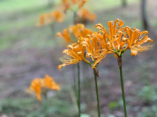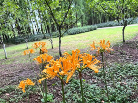 有人說,共青森林公園的迷人之處在于它四季特色分明。如今,石蒜到了盛花期,橘黃色、紫紅色,或是單株散落在路旁,或是成片佇立在林下。