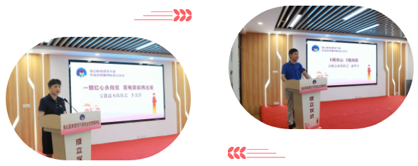 寶教薪火隊隊長李美萍和E網青山隊隊長盛華平分別代表離退休干部專業志愿服務隊隊員作了表態發言。
