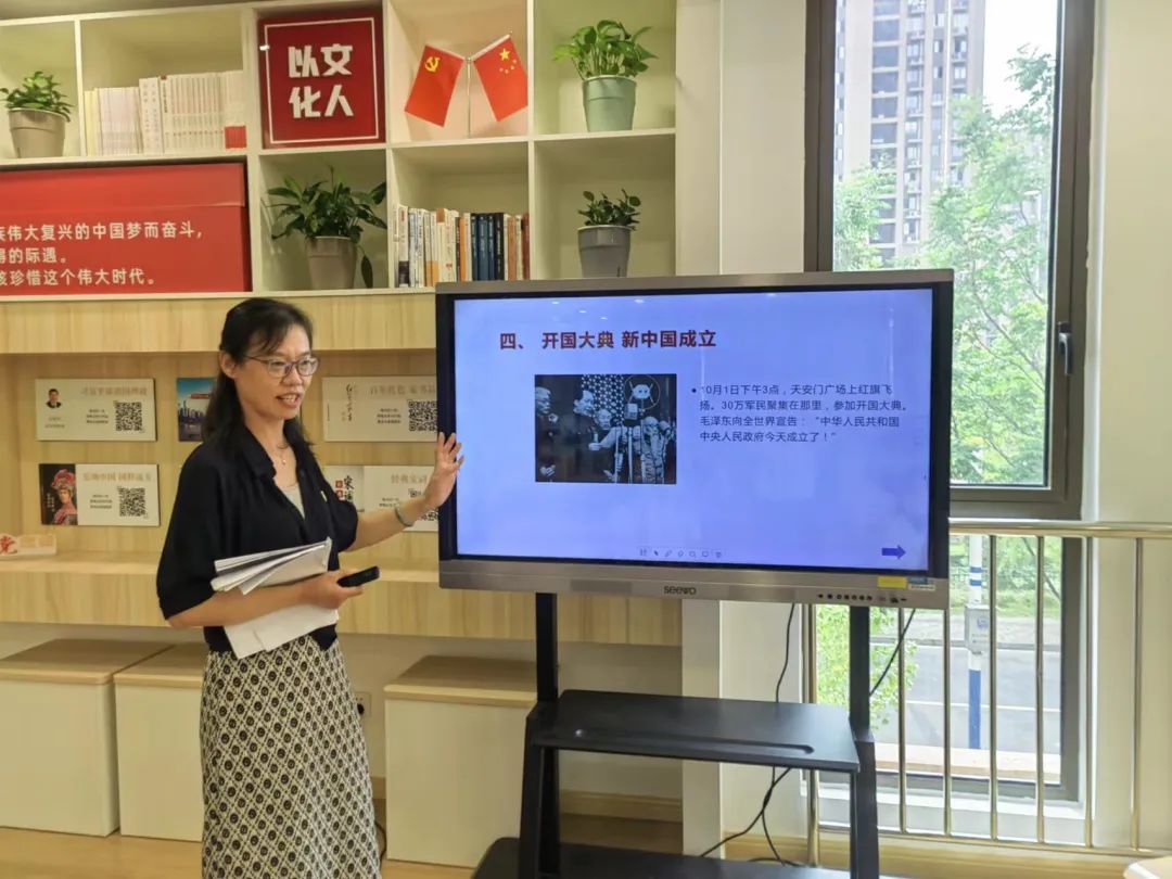 寶教薪火專業志愿服務隊隊員顧麗雅為青少年作“喜迎二十大,傳承紅色基因”故事宣講。
