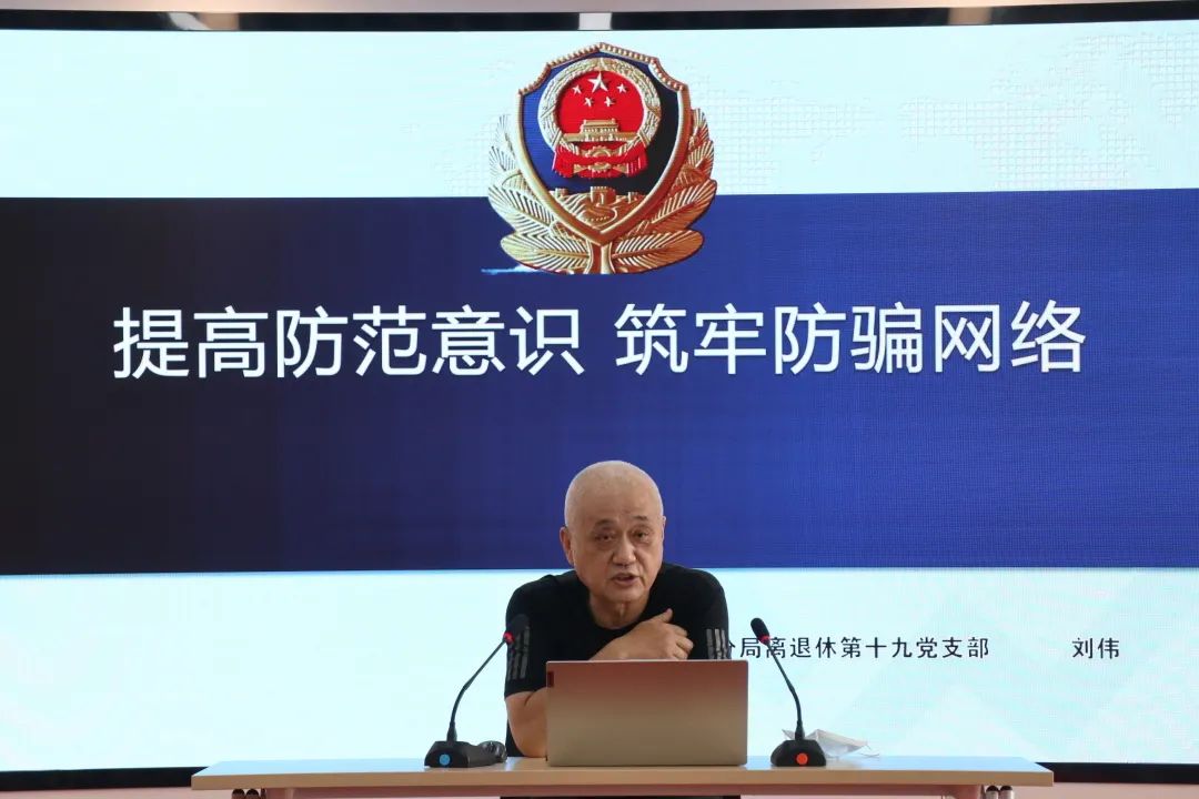 E網青山專業志愿服務隊隊員劉偉為老同志作防網絡詐騙講座。