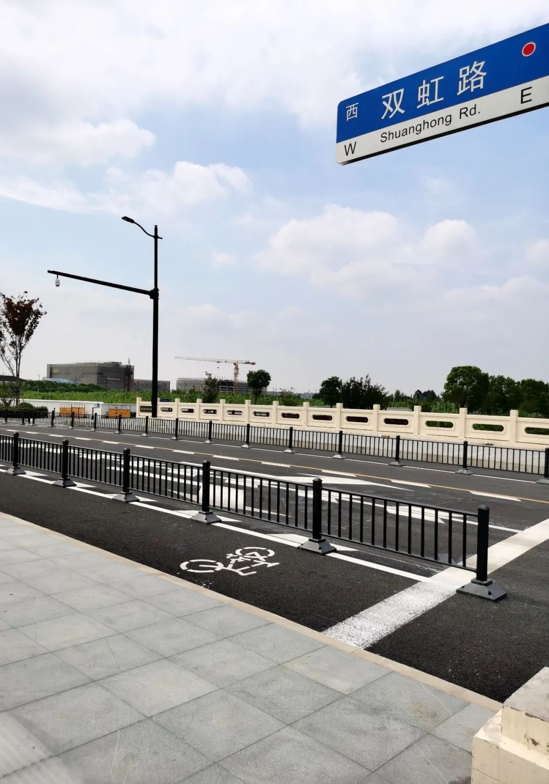 雙虹路(綏寧路—迎樂路)西起綏寧路,東至迎樂路,全長約304米,設置為雙向三車道,兩側分設非機動車道和人行道,是一條城市支路。該道路建成通車后,為沿線航空領域為主的企業單位和新涇家苑等社區的車輛和行人出行提供了便利,同時也進一步緩解了周邊道路的交通運行壓力。