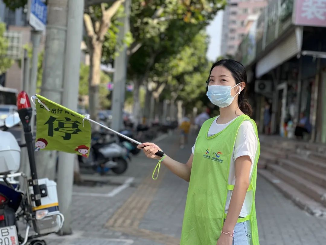 其實,每周工作日的上午7:30-8:30和下午5:30-6:30,在江灣鎮街道轄區車站南路水電路、汶水東路水電路兩個路口,過往的市民們都能看到和湯小姐一樣的身影,他們隨著交通指示燈的變換,揮動著手中的“文明交通”旗幟,提醒市民文明出行。