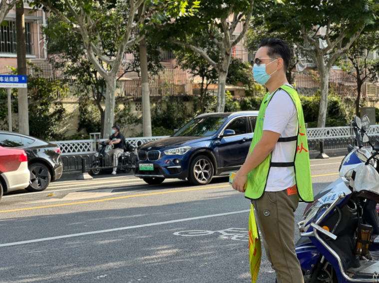 上午8點30分,順利完成了一小時執勤任務后,湯小姐脫下志愿者背心并歸還相關物品,踏上了去往單位上班的路。