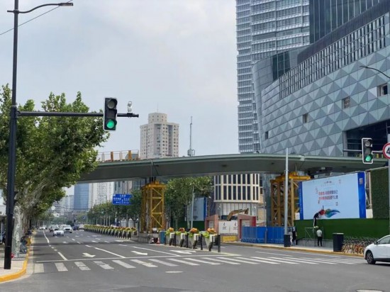 8月30日凌晨,北外灘核心區空中連廊首段實現結構合攏。在東長治路(丹徒路、公平路)區間,一座“天橋”跨越東長治路, 將兩個樓群連為一體。
