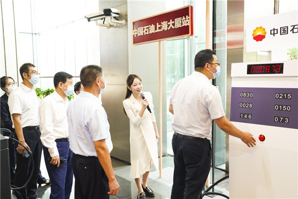 8月30日上午9點,一輛代表中國速度的“石”光專列,緩緩駛入上海陸家嘴金融城。在中國石油上海大廈的樓宇內,諸多青年白領駐足觀賞:或“乘坐”綠皮時光列車,追憶現代化石油建設的波瀾旅程;或在石油“磕頭機”模型前打卡拍照,感知先輩風范的精神地圖;或重溫百年建黨光輝歷程,感悟紅色文化的震撼力量。