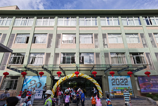人民網上海9月1日電(陳晨)伴隨著蟬鳴,九月開學如期而至。今天,上海約165萬名中小學生和55萬名幼兒迎來開學第一天,經過近一個學期的線上學習和兩個月的暑假以后,同學們重返久別的學校,開啟集體生活。