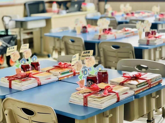 尚德實驗學校精心的為孩子們的新課本扎上蝴蝶結