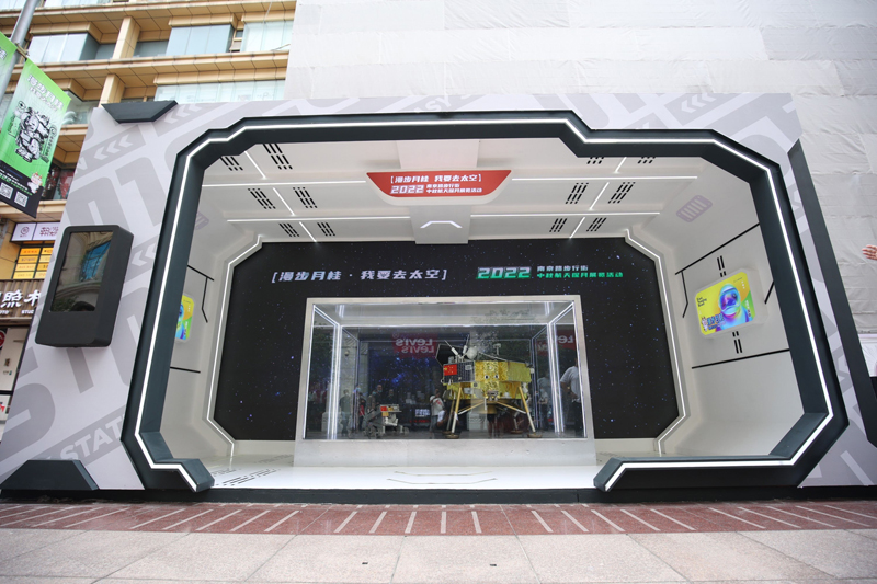 為了讓市民沉浸式感受中國航天魅力,南京路步行街攜手上海航天技術研究院,以探月任務仿真模型展覽、登月互動打卡體驗及科技互動等趣味、多元手段打造互動展陳裝置,讓專業的航天知識以更加生動有趣的方式向大眾傳遞。