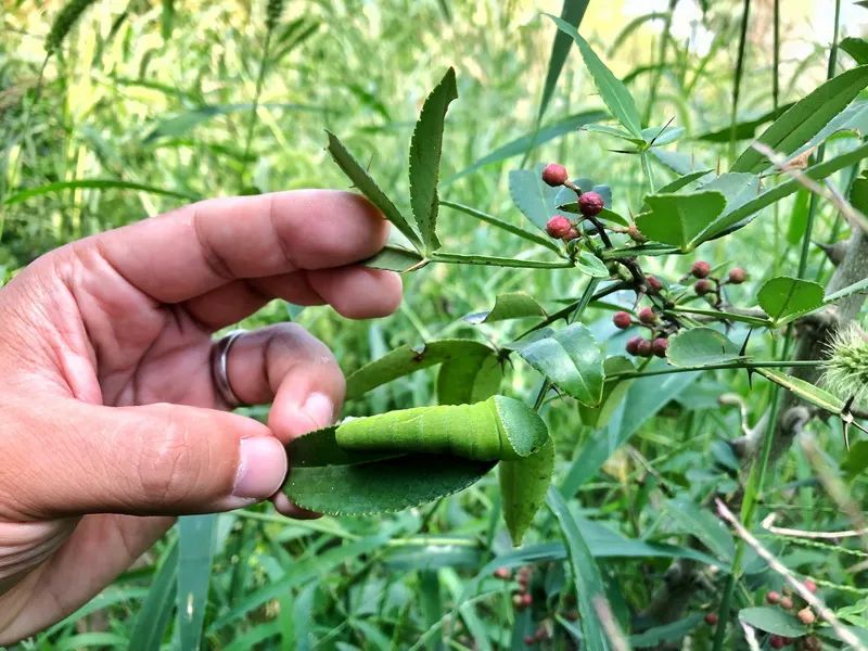 “這個叫碧鳳蝶,它的幼蟲要吃竹葉花椒的葉片?!惫杖恢钢环N看似花椒的植物告訴我們,“這種植物在上海很少,在松江有一些,其他地方零零散散有一點,我們是幾年前從蘇州太湖的一個島上采的?!?/p>