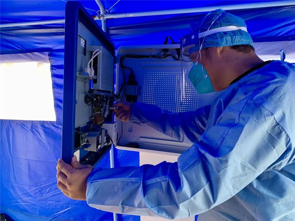 3月,第一輪篩查工作量非常之大,短短幾天內,除了布置人員和搭建登記采樣棚之外,還有一個大難題——網絡部署。于是,黃椿茂提前帶著移動設備和兩臺電腦來到檢測點,連夜調試無線網絡的穩定性,最大程度地確保信息化登記的工作效率。