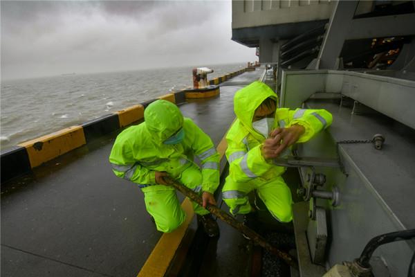 而在外高橋口岸,50余艘次國際航行船舶因臺風取消或變更了出入境(港)計劃。上海邊檢總站外高橋邊檢站及時啟動惡劣天氣應急預案,全力確??诎栋踩槙?。昨天早晨8時,上海外高橋口岸泊位都已清空,完成停工封港。
