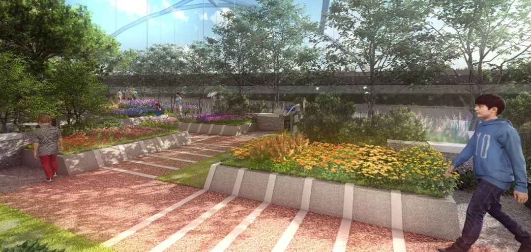 科普休憩區是為傳粉昆蟲(蝴蝶)提供食物來源的區域,由蝴蝶生境區和秘境區兩部分組成,通過增加種植的多樣性,為傳粉昆蟲種植寄主植物和全年花期持續蜜源植物。值得一提的是,結合中國傳統的二十四節氣設置的二十四花徑,就是通過種植多種花卉提供四季連續不斷的花蜜,以便讓傳粉者在這里定居,或固定來覓食。