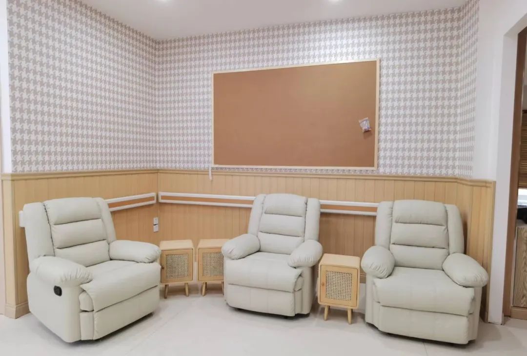 “樂鄰坊”主要由黨建咖啡、長者助餐、家庭服務中心三大功能區域組成。黨建咖啡區是以紅色文化引領的新文創區域,除了提供日常喝咖啡的場所,還承擔了提供社區居民自治活動場所的功能;長者助餐區以解決虹旭居民區及周邊社區老年人的用餐為主,結合“虹旭家園”智慧化平臺,提供線上點單、送餐到家門口的服務;家庭服務中心則是為了促進社區內家庭關系的和睦融洽,開拓了向社區居民提供各項家庭服務的區域,包含了家庭生活教育、兒童生活教育、青年服務、樂齡服務等。此外,還提供了幼兒托育、老年日托、長者運動康復、智慧健身步道等服務區域。