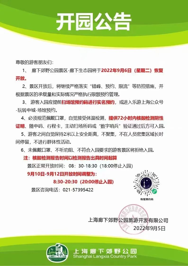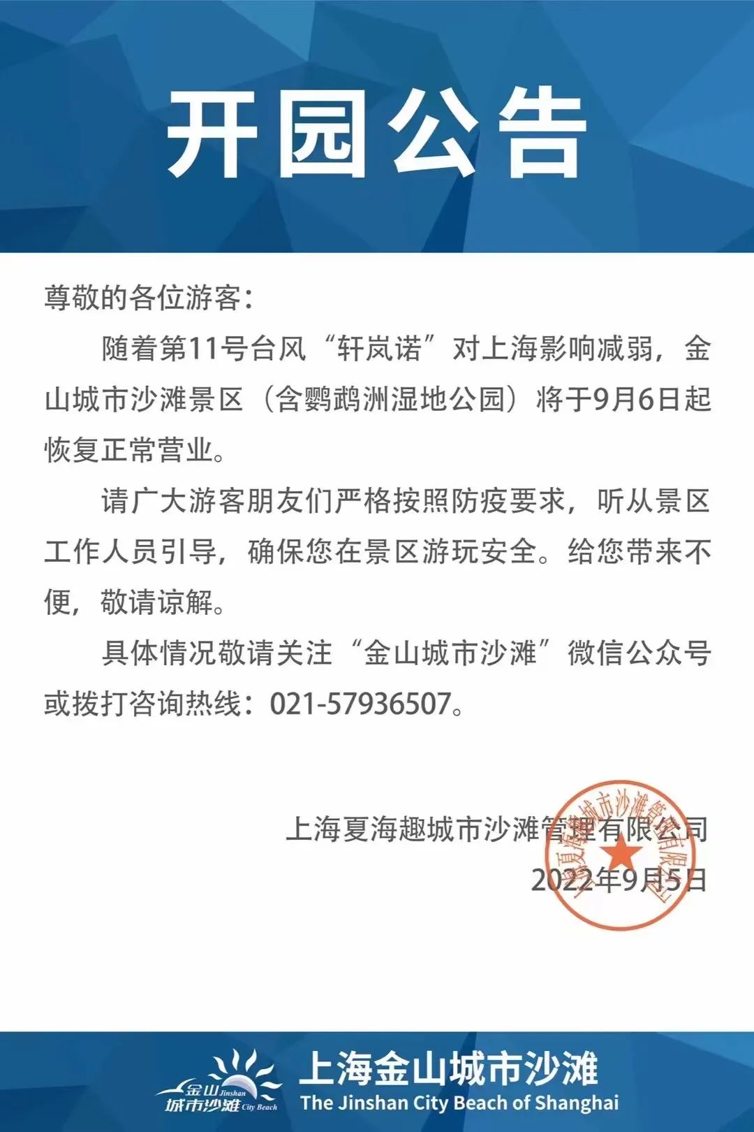隨著今年第11號臺風“軒嵐諾”對申城影響減弱,山陽田園將于2022年9月6日(星期二)起恢復開放。另外,17:00~20:00對周邊村民免費開放活動,也從2022年9月6日(星期二)起照常開放。我司將繼續密切觀測天氣狀況,如開放時間有新的變化,將對外發布即時信息。