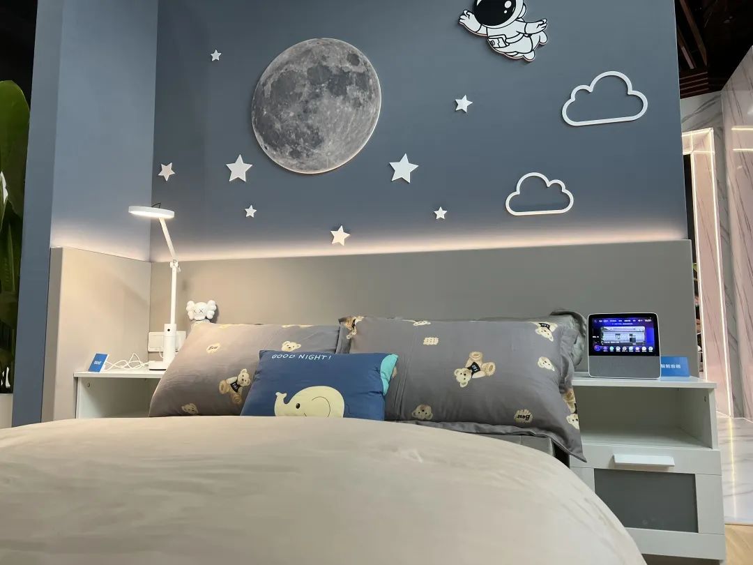 來到臥室,叫一聲智能管家就可拉開窗簾,都市夜景盡現眼前。智能臺燈每到夜晚,就可感應人上下床的動作,并作出開關反應。而在兒童房,安全性能被放到首位。智能插座可設定開關機時間,還可借助手機遠程通斷電,而桌上一張小小的電子學生證則有著更多功能?!耙驗樵S多孩子在學校里不能佩戴智能設備,為了確保他們的上下學安全,家長可以給孩子購置這張電子學生證。它上面的數字按鍵,可設置成一鍵撥號,方便孩子撥打家長的電話。它還有交通卡的功能,還內置離線健康碼,方便孩子乘坐公共交通?!鄙虾R苿庸ぷ魅藛T許敏慧表示,“此外,如果家長想知道孩子的實時位置,也可啟用它的定位功能?!?/p>