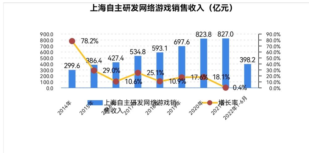 2021年上海網絡游戲銷售收入1250.3億元,同比增長3.7%,占全國三分之一。其中,2021年上海自主研發網絡游戲銷售收入為827億元,占上海網絡游戲銷售收入82.7%的市場份額。9月6日在2022年上海游戲精英峰會上發布的《2021—2022上海游戲出版產業報告》(以下簡稱《報告》)顯示,自主研發網絡游戲已構成上海游戲產業的基礎,自研產品、自研能力是帶動上海游戲產業發展的主要因素。