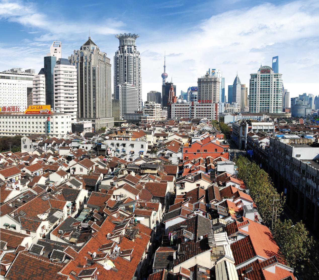 曾經的寶興居民區金陵東路地塊,與附近外灘建筑群形成鮮明對比。