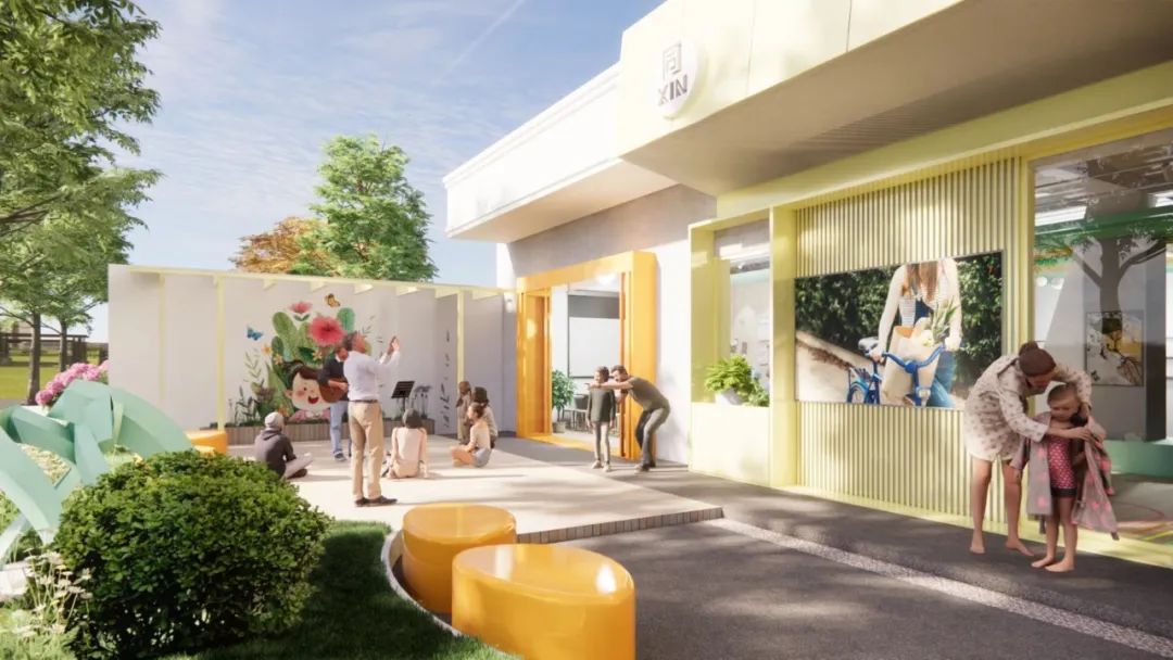從發布的設計效果圖可以看出,新涇鎮整合了眾多便民服務設施,綜合藝術空間、共享客廳、健康咨詢、市民閱讀、青年創業等多重功能,讓同XIN街區項目在有“高顏值”的同時具備“高內涵”??Х瑞^、書吧、口袋公園以及康養中心、藝術舞臺等原本各自獨立的生活設施,通過一系列設計巧妙地結合在一起,讓居民都能享有一片自在的空間,做到全齡友好。