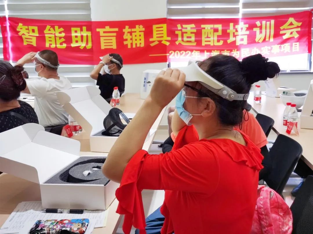 “太感謝了,免費供我們使用‘高科技’。以后出門坐公交,我可以自己‘看’啦!”今年61歲的金阿姨家住新涇五村,是區內首批經專業人員評估、培訓、綜合考評,簽約后完成智能助盲輔具適配的視障人士之一。